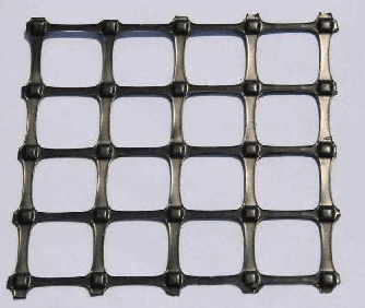 經(jīng)過拉伸形成的具有方形或矩形的聚合物網(wǎng)材,按其制造時拉伸方向的不同可為單向拉伸和雙向拉伸兩種。它是在經(jīng)擠壓制出的聚合物板材(原料多為聚丙烯或高密度聚乙烯)上沖孔,然后在加熱條件下施行定向拉伸。單向拉伸格柵只沿板材長度方向拉伸制成;雙向拉伸格柵則是繼續(xù)將單向拉伸的格柵再在與其長度垂直的方向拉伸制成。